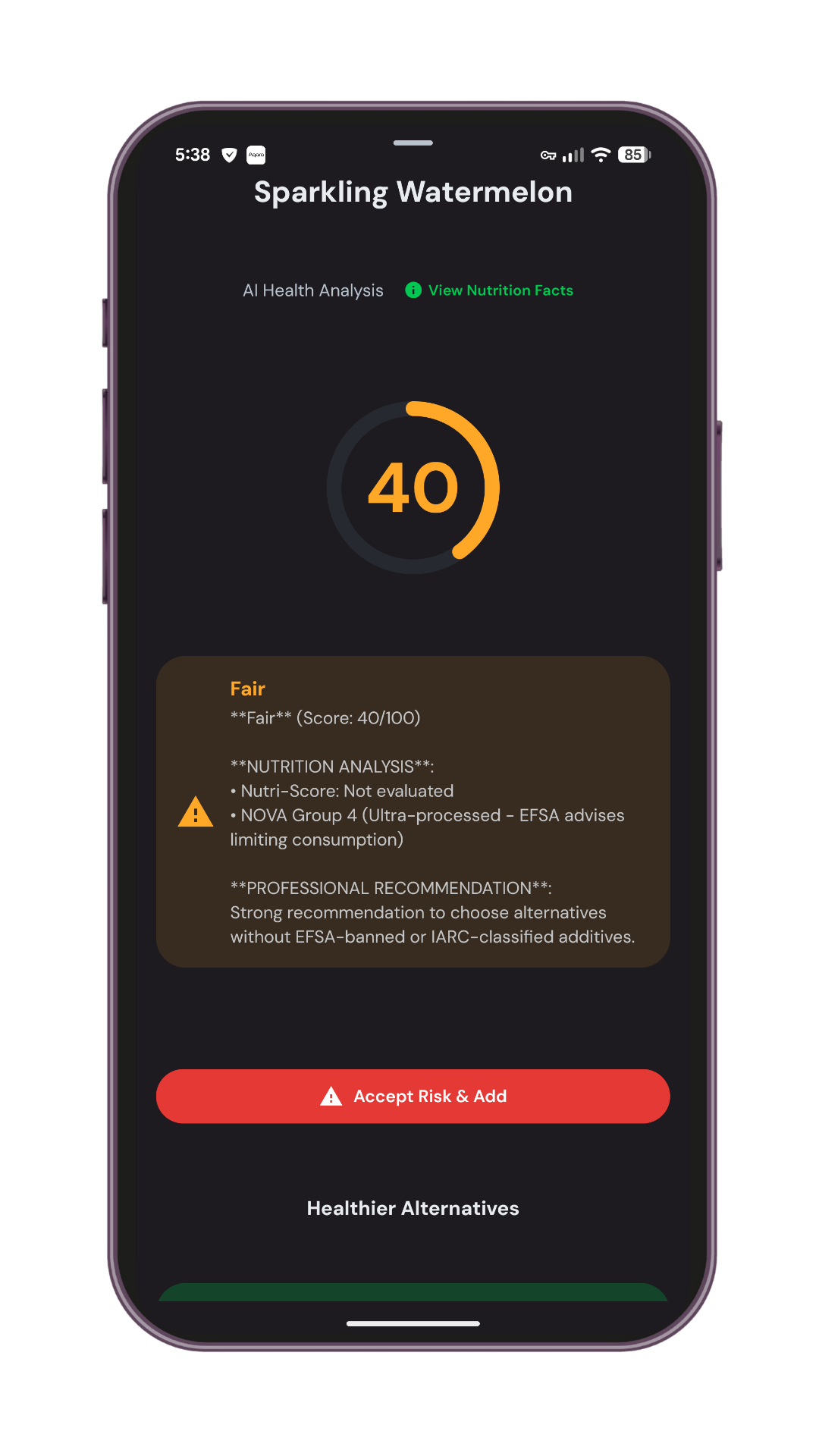 Our proprietary methodology cross-references raw nutritional data with NOVA classification standards and Nutri-Score guidelines. Processed through advanced AI, it delivers a definitive 0-100 health score, protecting you from ultra-processed additives and hidden chemicals.
