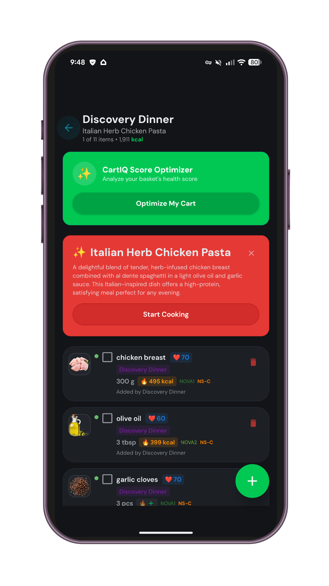 From barcode scanning to intelligent cart optimization, CartIQ gives you powerful tools to make smarter food decisions in seconds.